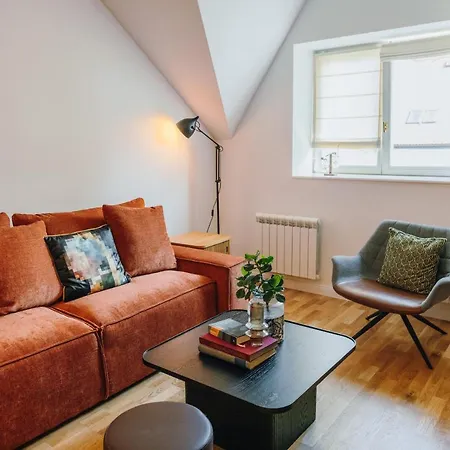 Modern Mezzanine Apt At Jecna St Appartement biedt een zitruimte en is ingericht met een bank en een bureau, en moderne gemakken zoals een TV en een flatscreen TV met satellietzenders. Dit appartement heeft ook parket vloerbedekking. Deze accommodatie verwelkomt z'n bezoekers in 1 slaapkamer. Het appartement biedt 1 badkamer met een apart toilet en een douche, evenals een haardroger en badlakens.